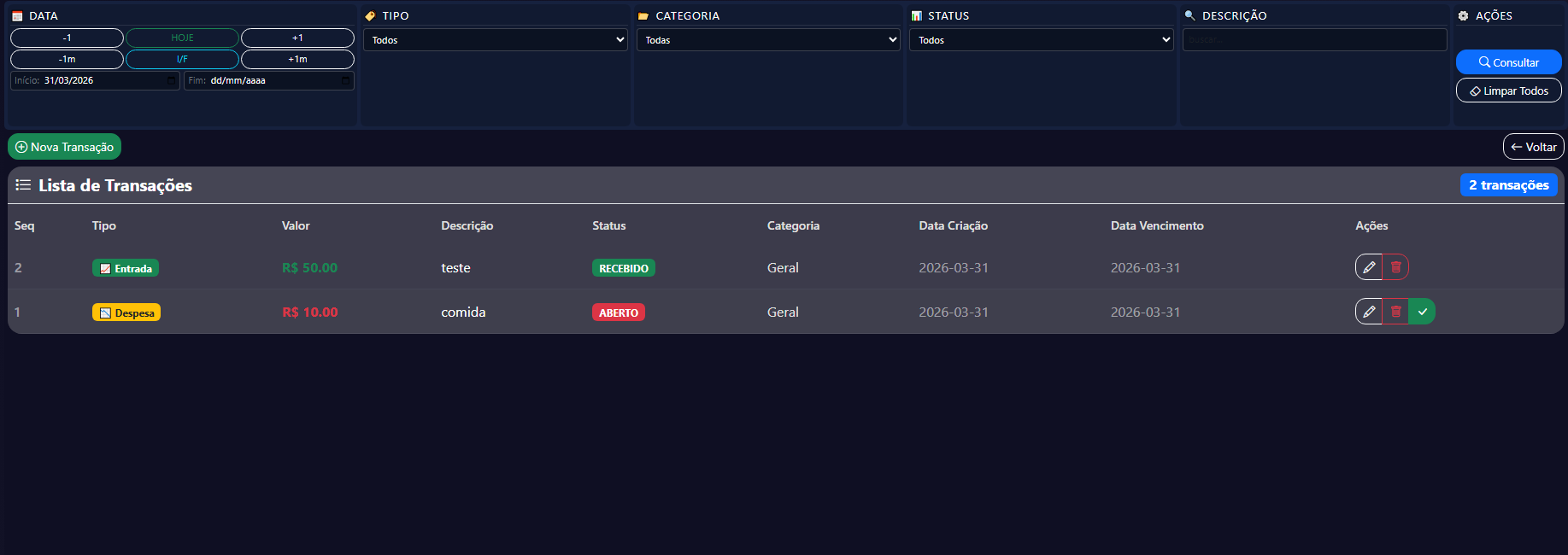 Sistema web para controle financeiro e organização de tarefas